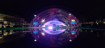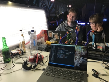 Zweiter Kongress in Leipzig, diesmal mit großem LED Panel. Das Panel wurde während des Events erweitert, damit 2 Spielern mittels Drehknöpfe gegeneinander Pong spielen konnten.